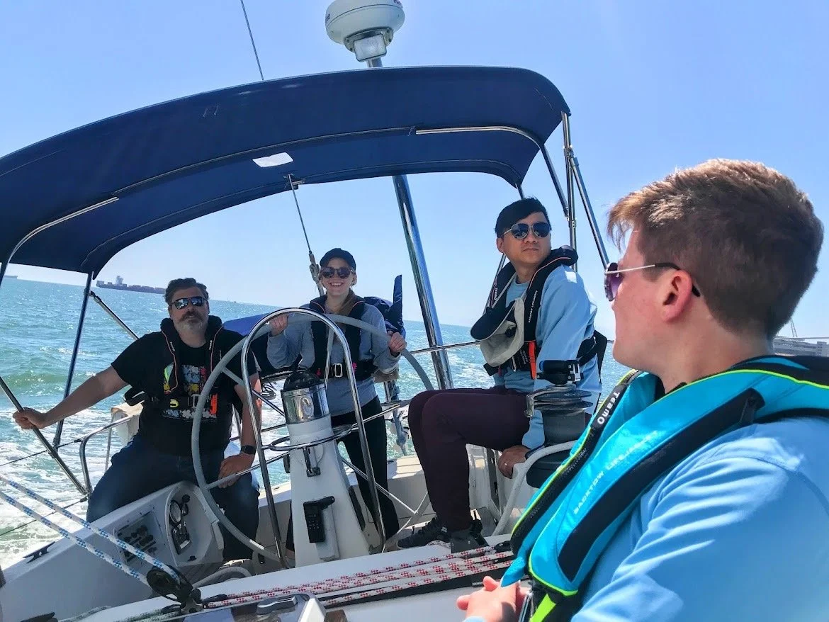 After getting back to SF on a (very) early flight, I had a few more newcomers join for a windy but beautiful day sailing. Liv recruited Terris, Katherine, and Chris who all jumped in and picked up everything very quickly. We tried to have lunch behind Angel Island but the wind speed and direction made it a bit challenging. Found calmer breezes near Tiburon and practiced tacking back and forth before hitting stronger breezes and 10 knots SOG on the way back!
